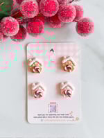 Cute little gingerbread house studs. Come in "Baked" which is tan and shaded in brown or sweet "Pink"