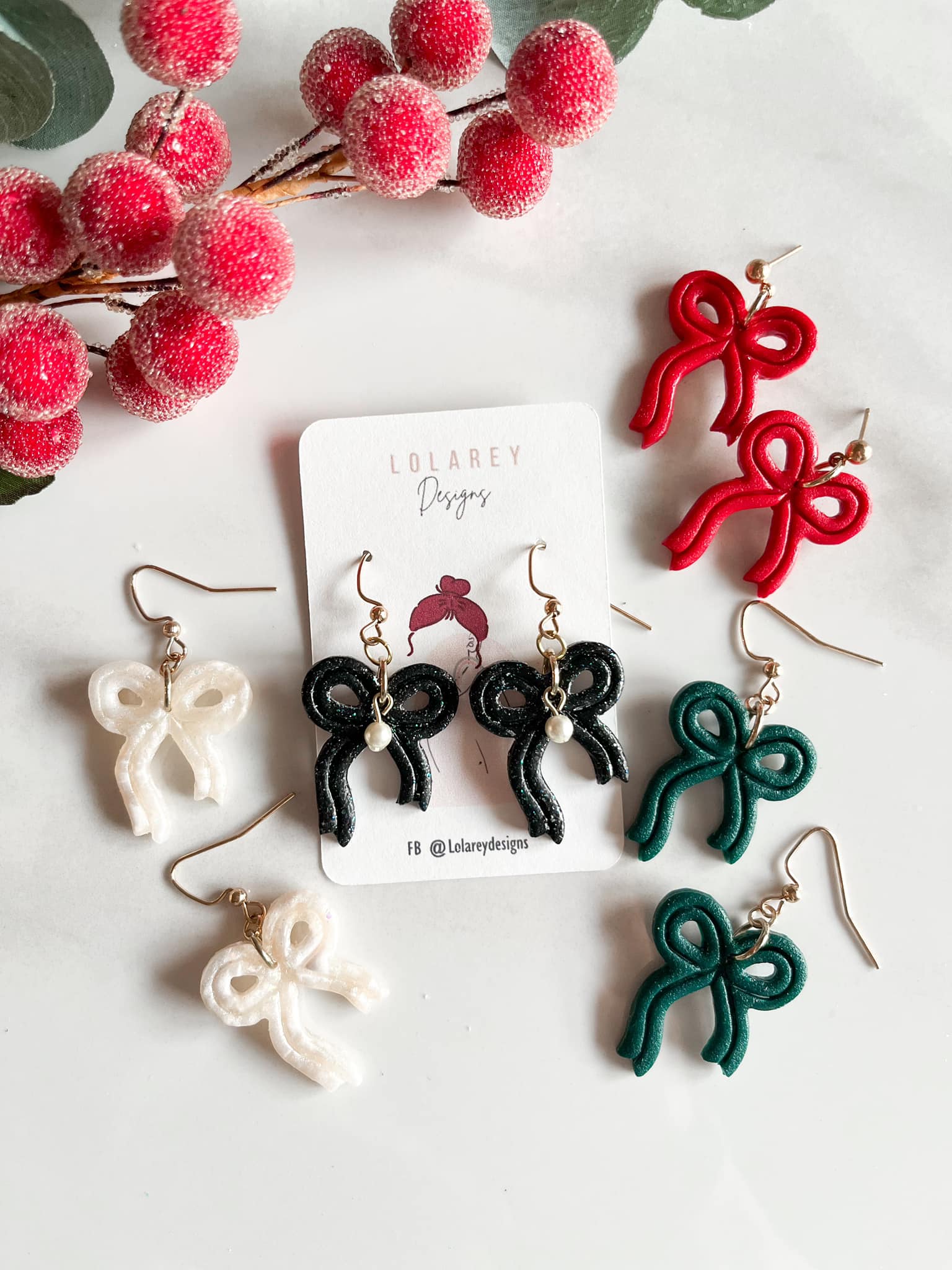 Add a touch of charm to your holiday style with these handmade bow earrings — a perfect mix of sweet, festive, and elegant.