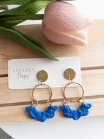 Pretty Blue Dangling with Gold plated circle tops (Nickel free).